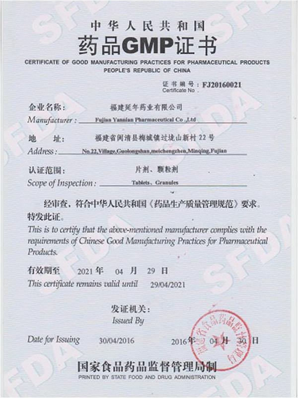 福建延年藥業有限公司位于福州市閩清縣城關,工廠坐落在風景秀美的梅城森林公園山腳下,公司前身是中國人民解放軍第9747工廠,創辦于1970年9月,隸屬南京軍區總后勤部,企業的地方名稱為福建閩清制藥廠。1998年6月為貫徹中央關于軍隊不再從事經商活動的決議,企業軍轉地改制移交地方,2001年9月企業改制,更名為福建延年藥業有限公司。
